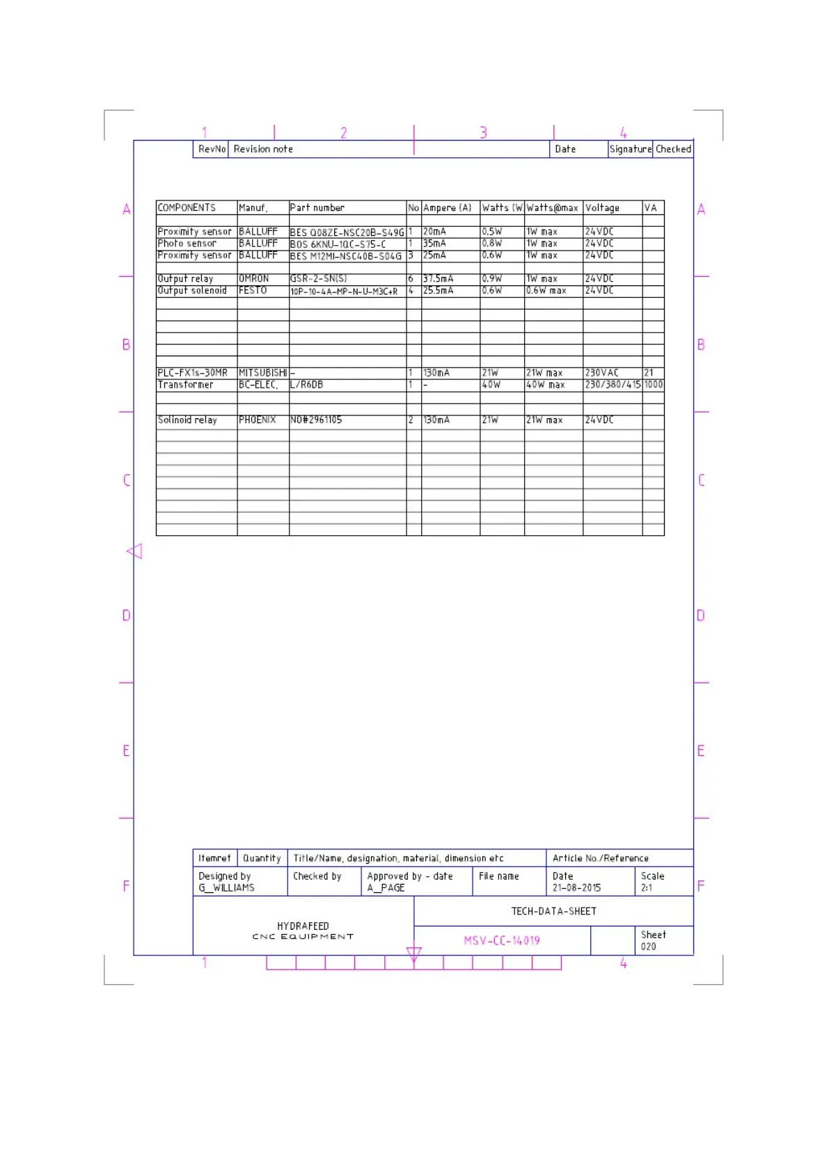 Hydrafeed Multifeed 65 - Component Data Sheet