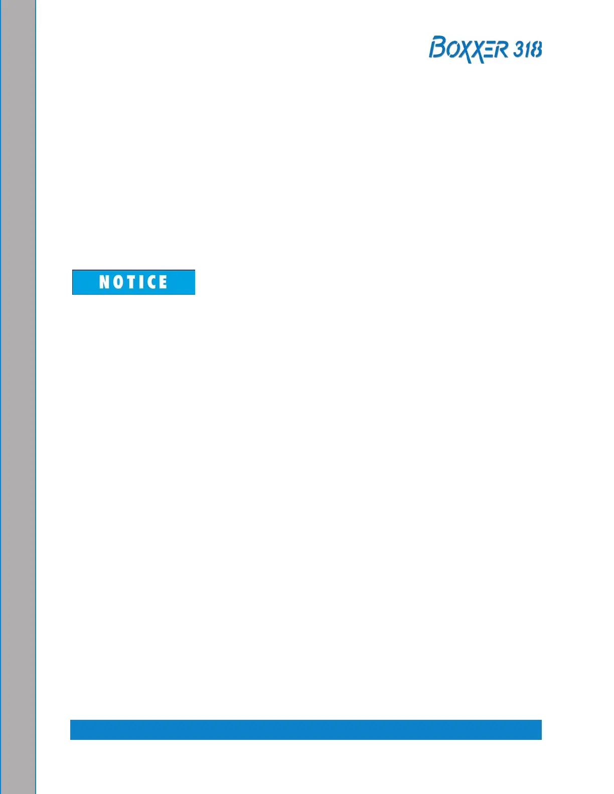 The Boxxer 318 electrical system operates on 12 V DC which is provided by the battery.
