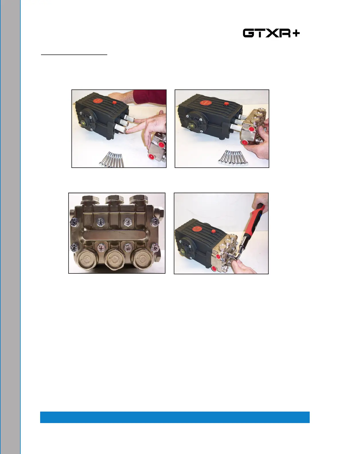 2. Re-install manifold and torque the fasteners in an “X” pattern to 50% of specication
