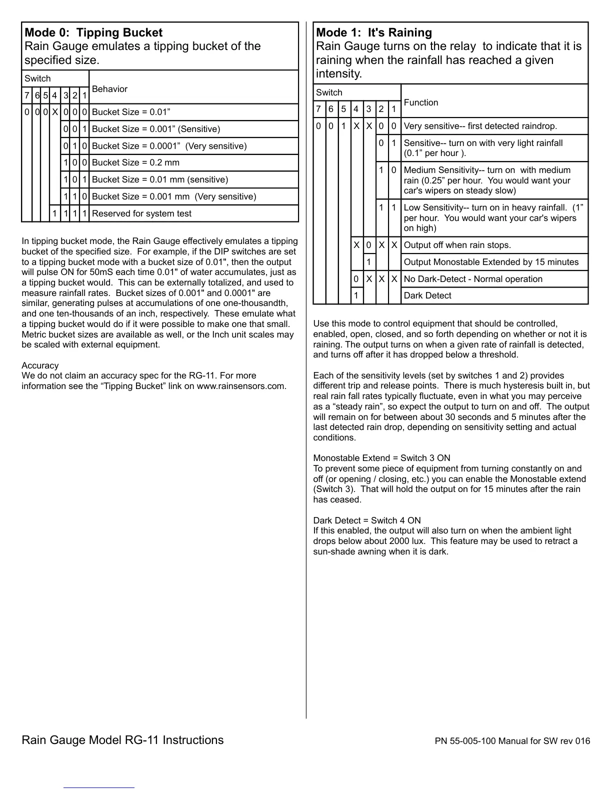 Rain Gauge Model RG-11 Instructions PN 55-005-100 Manual for SW rev 016