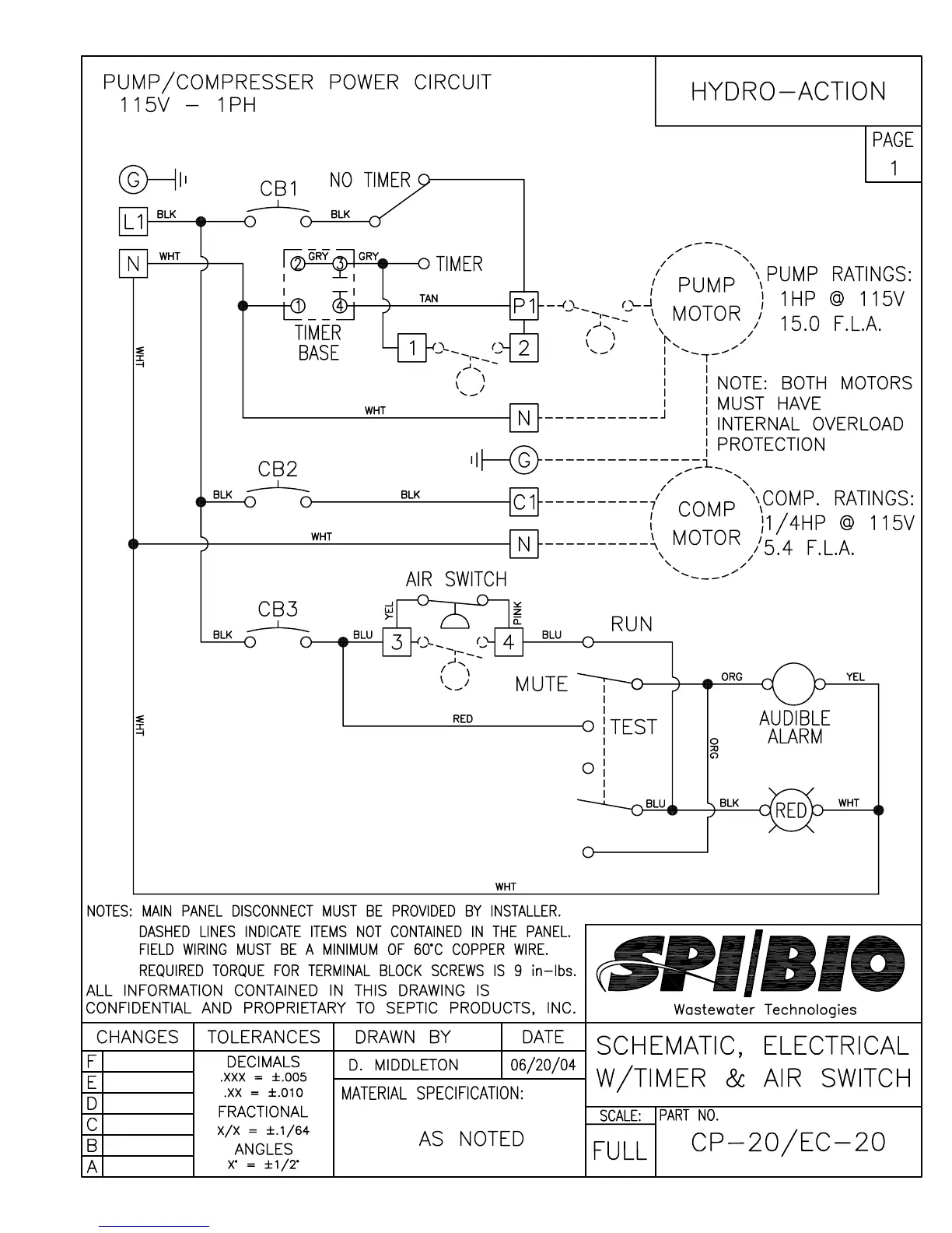 Hydro Action AP-500 - SPI Panel Electrical Schematic (W;TIMER & AIR SWITCH)