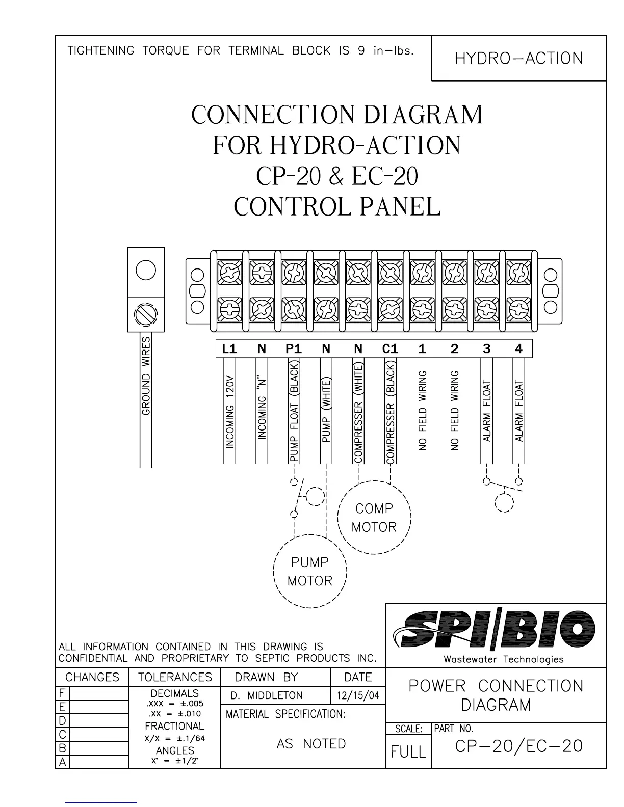 Hydro Action AP-500 - SPI Panel Power Connection Diagram (CP-20;EC-20)
