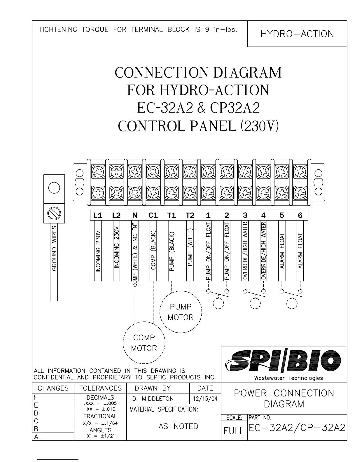 Hydro Action AP-500 - SPI Panel Power Connection Diagram (230 V)