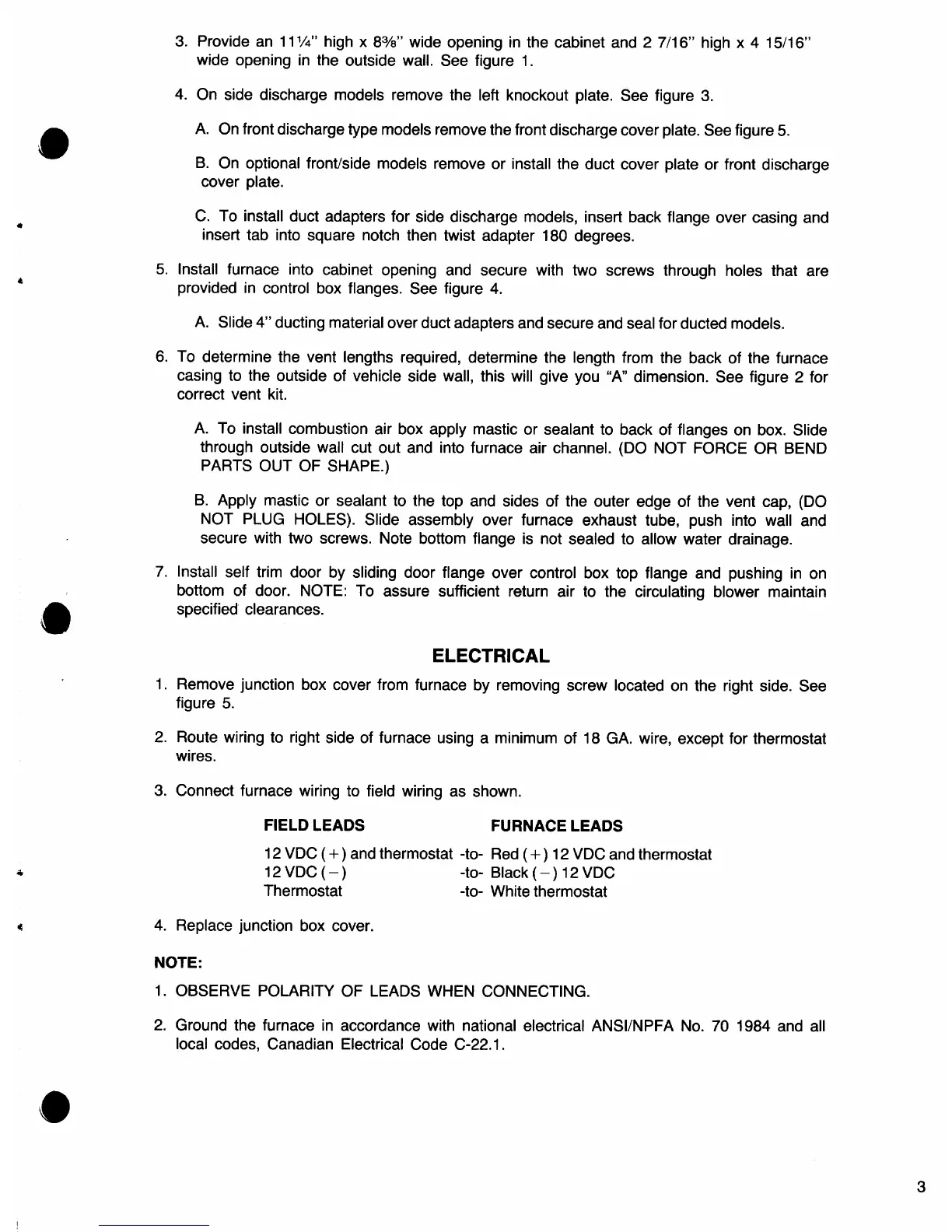 Hydro Flame FA-7920 - Duct and Venting Installation; Electrical Connections; Wiring Field Leads