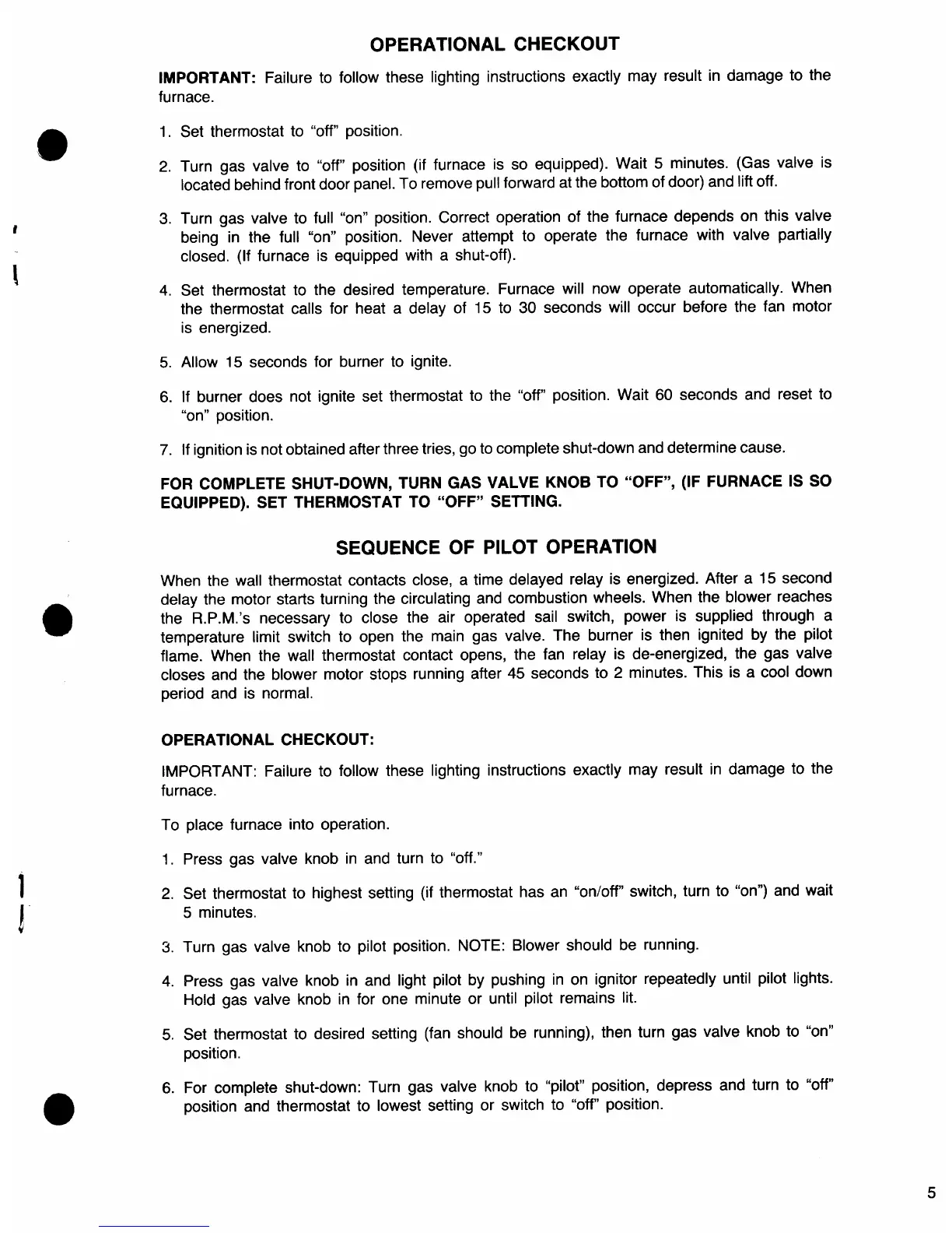 Hydro Flame FA-7920 - Operational Checkout; Furnace Startup Procedure; Pilot Operation Sequence