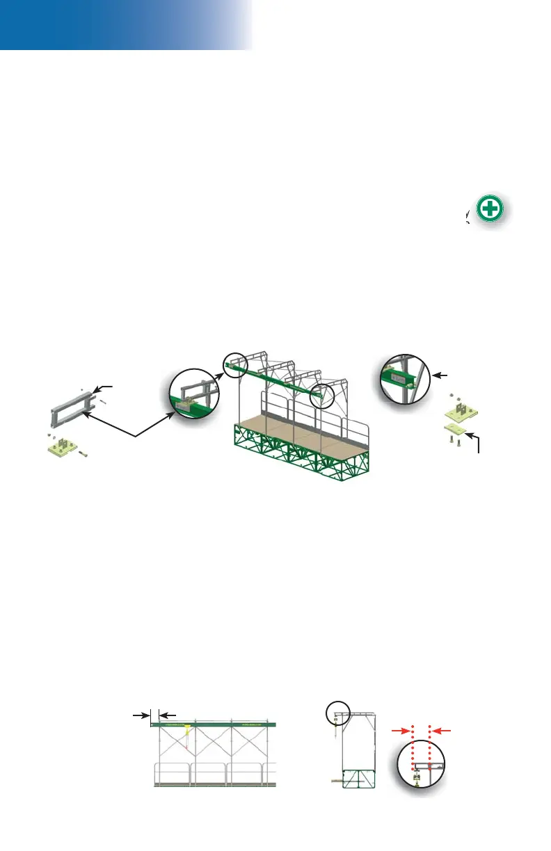 7- Make sure that the monorail beam does not overhang by more than 1' (0,3 m), as