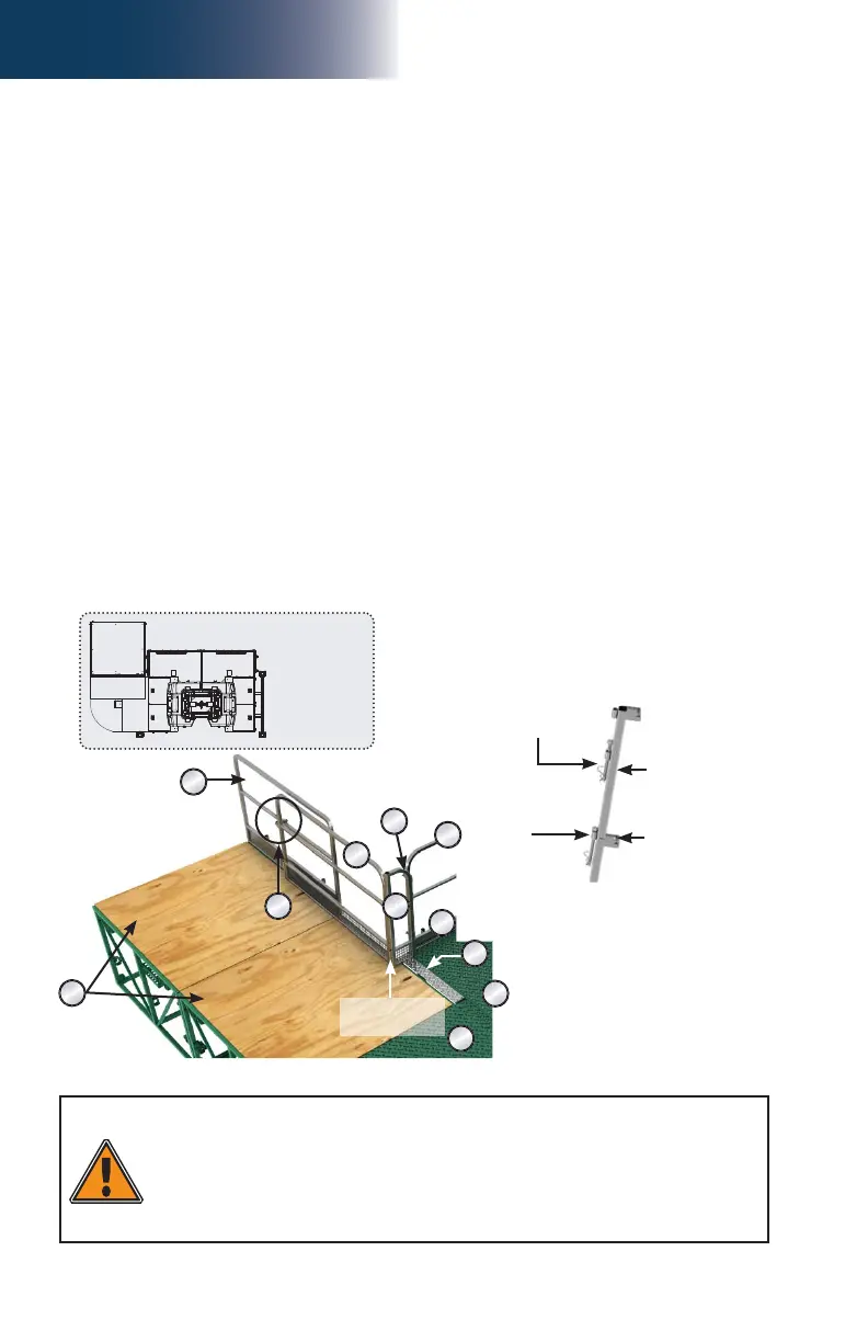 platform. Cover gaps by adjusting guardrails or by using plywood, planking or