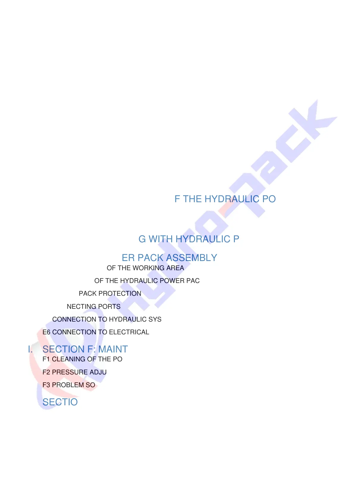 VI. SECTION F: MAINTENANCE OF THE HYDRAULIC POWER PACK