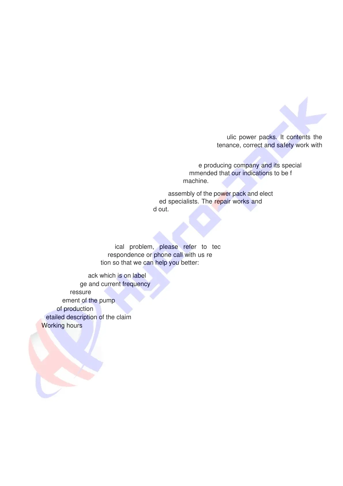 The present manual of operation is intended for users of hydraulic power packs. It contents the