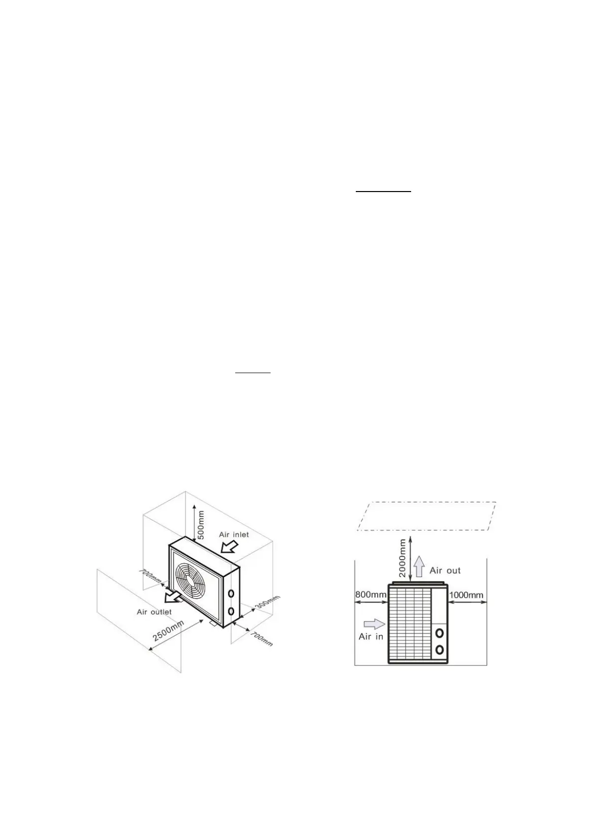 ATTENTION: Never install the unit in a closed room with a limited air volume in which the air expelled from the unit
