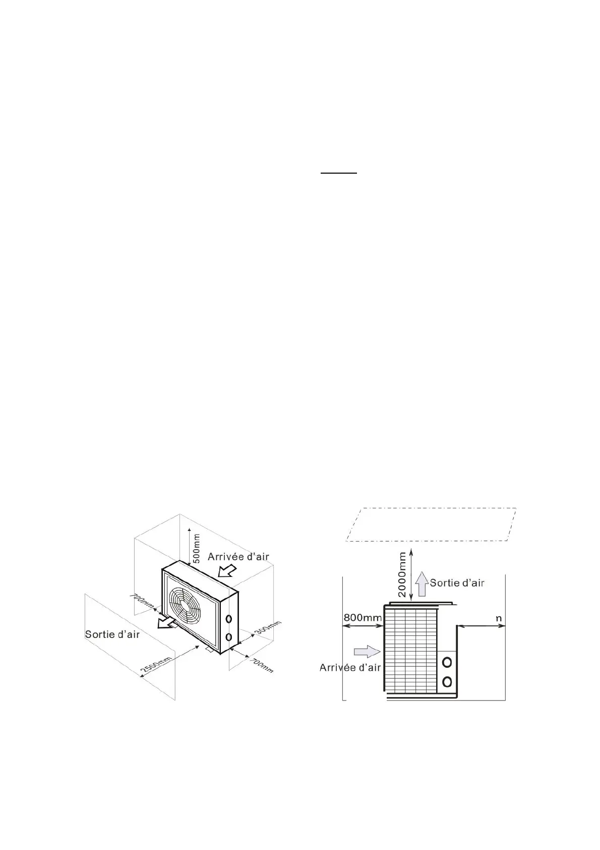 ATTENTION: L'unité ne doit pas être installée dans une zone où la ventilation d'air est limitée ou les emplacements