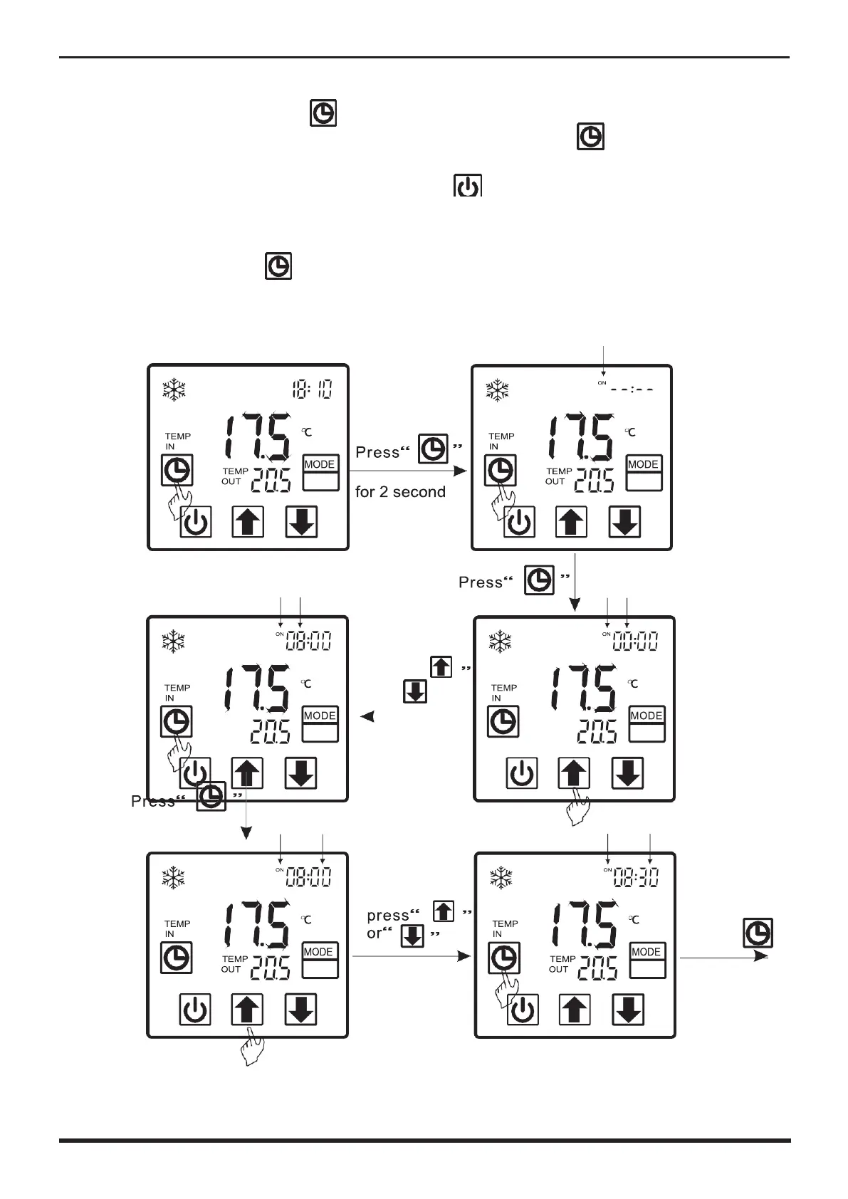 2 seconds and "off" is flashes you can set the timer off(means the unit timer is off).