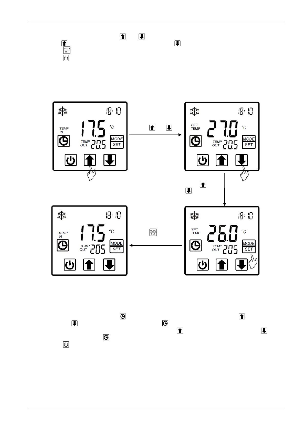 In the main interface press " " or “ “ and the current mode target-temperature flashes,