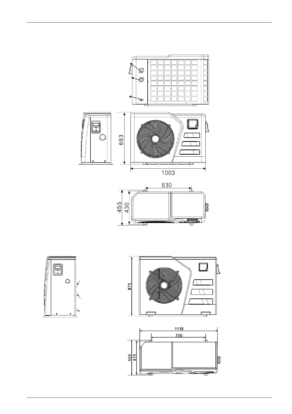 2.2. Wymiary zespołu pompy ciepła do basenów