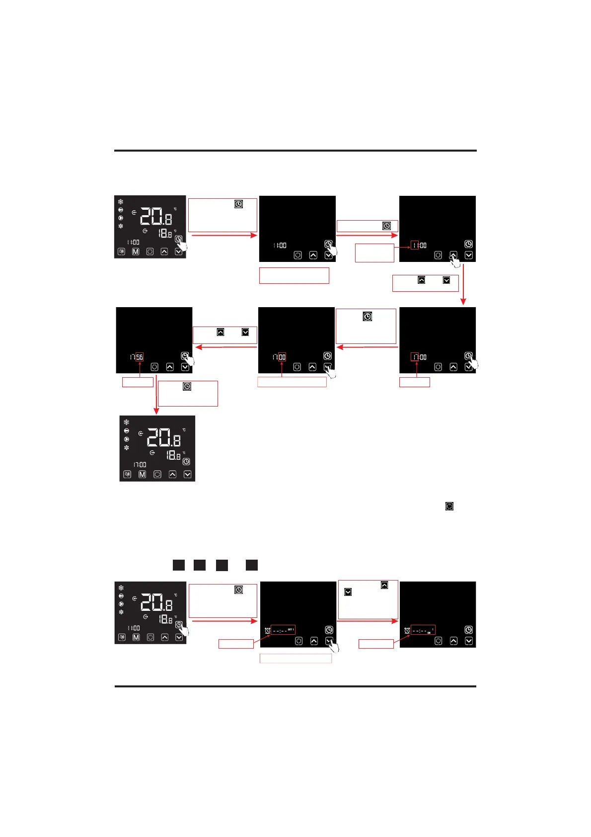 The wire controller can set up a two-stage timing switch: Timer ON1~ OFF1;Timer ON2~OFF2.