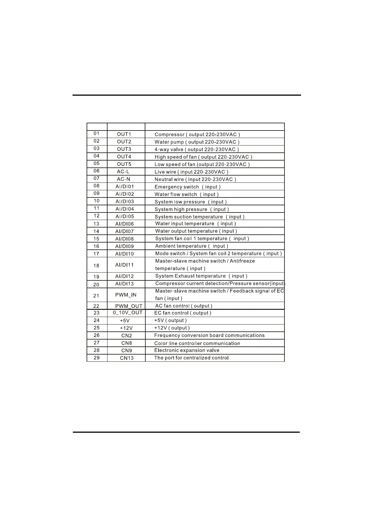 Main board of the input and output interface instructions below