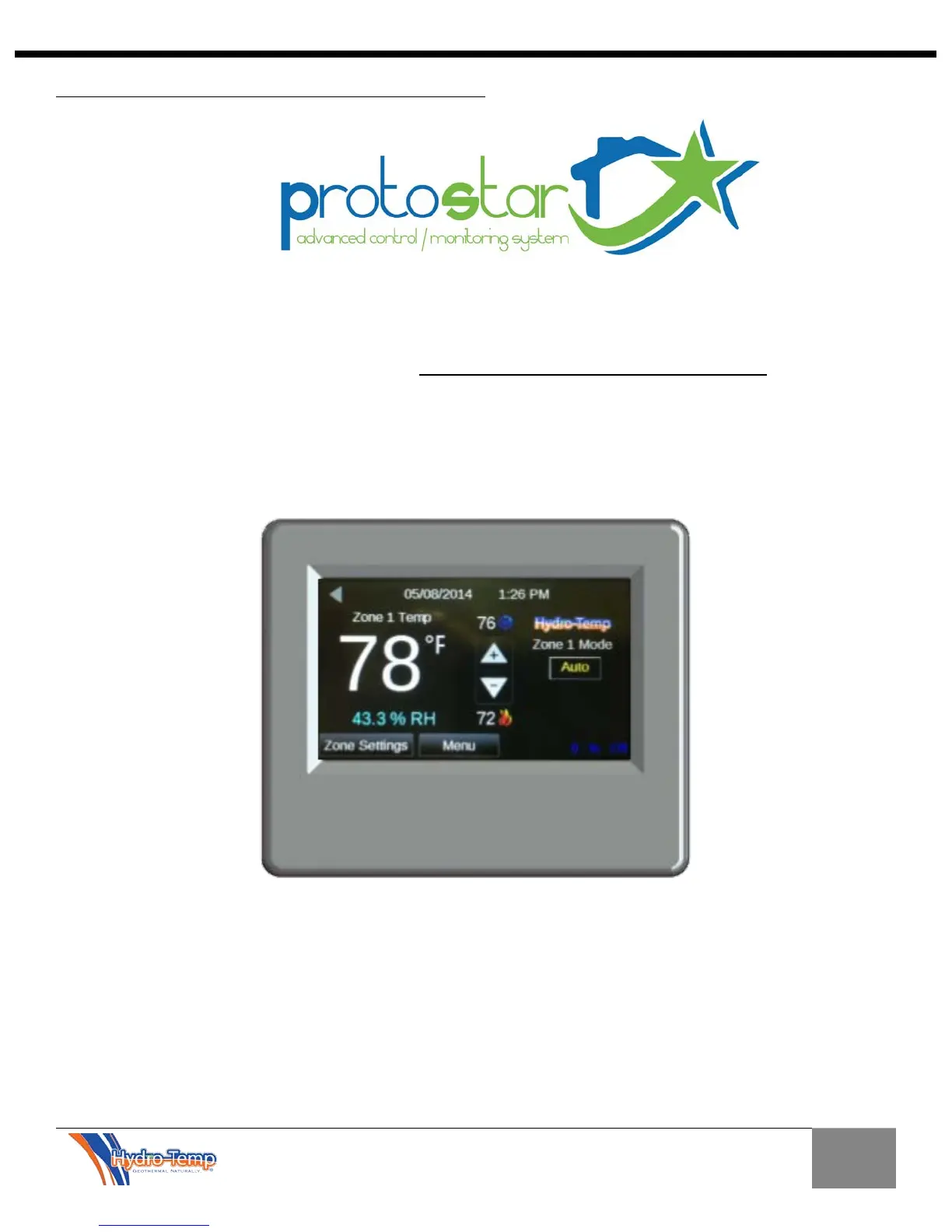 The Protostar touch screen is the standard thermostat used for Zone one or the primary thermostat in a no zone system