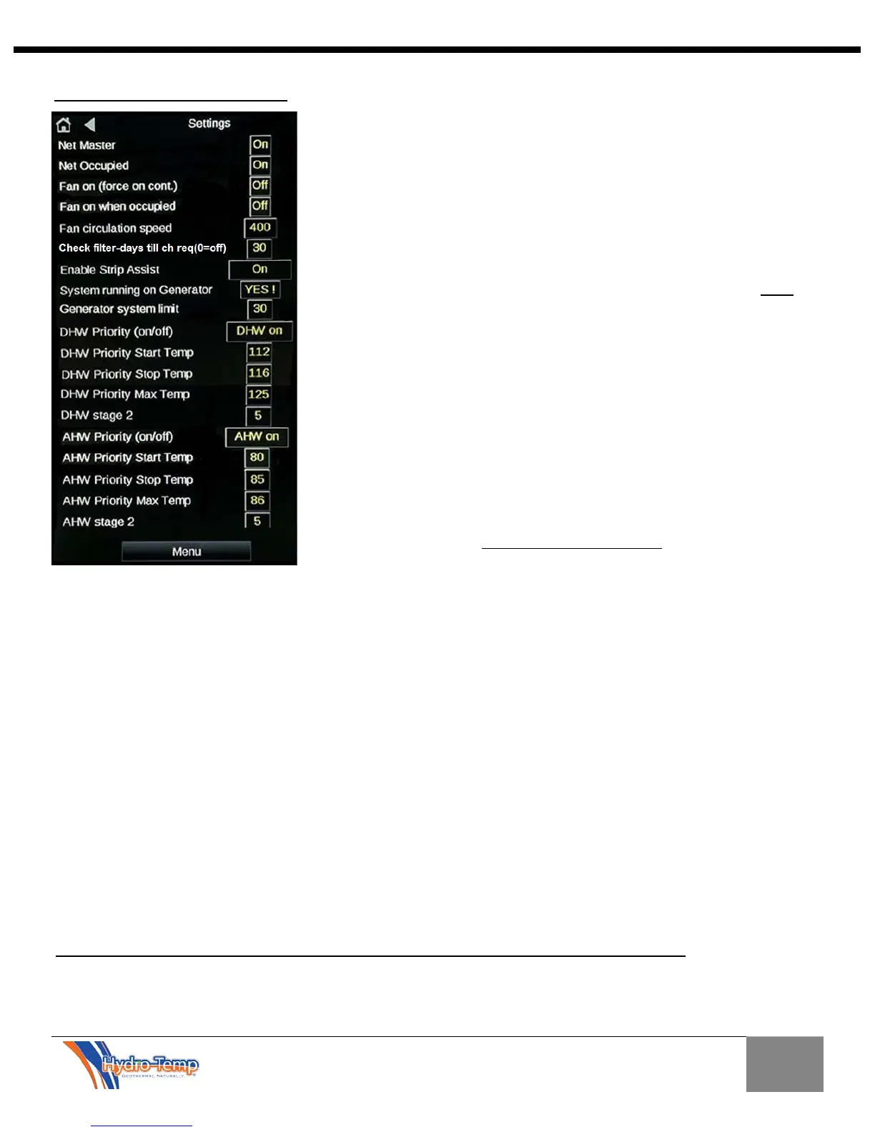 the limit set point and the strip heat will be disabled. If the generator being