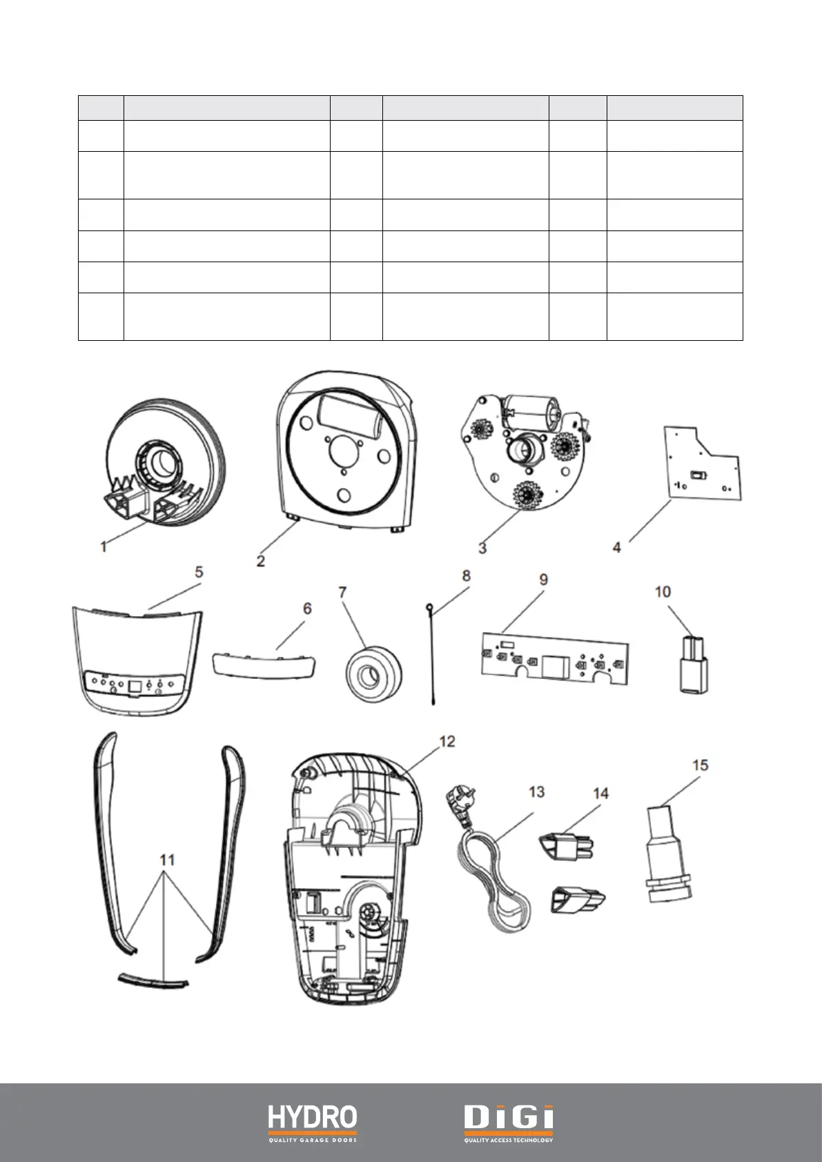 3 Chassis sub-assembly 9 Control board 15 Fuse