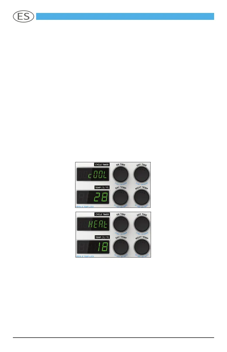 mostrará “COOL”. Para modificar la configuración, gire el selector de función DAY TEMP hasta la