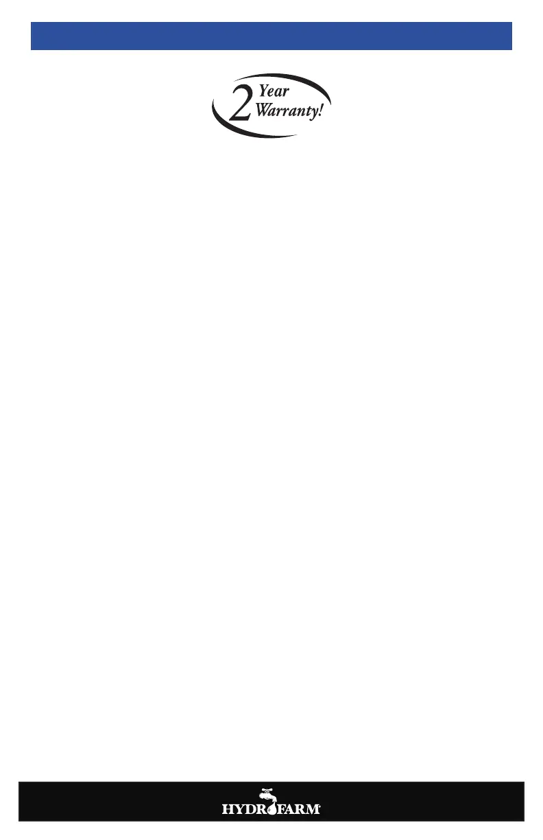 Hydrofarm warrants the 55APE4100 to be free from defects in materials and workmanship. The warranty term is for