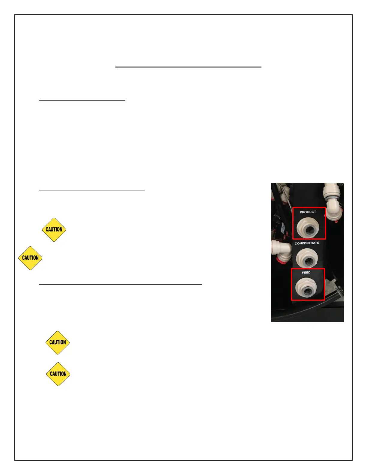 ENSURE THAT THE PRODUCT (PURIFIED WATER) CAN FLOW FREELY WITH