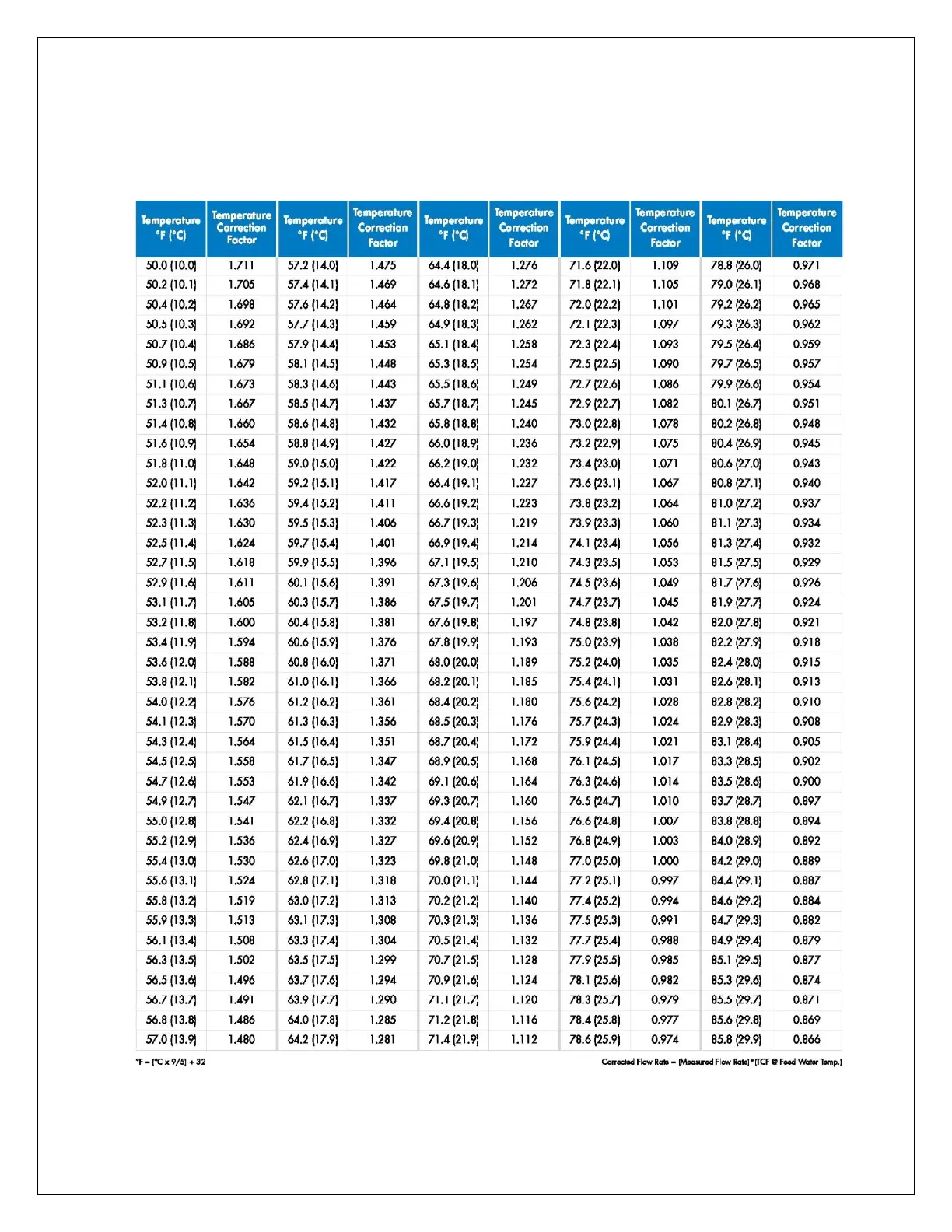 PRODUCT (purified water) flow at 77°F by the temperature correction factor. The result is