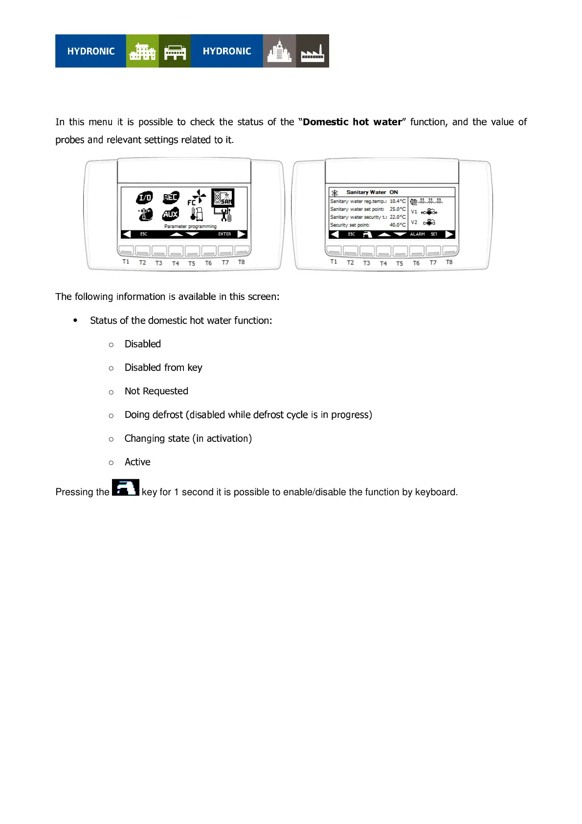 Pressing the key for 1 second it is possible to enable/disable the function by keyboard.