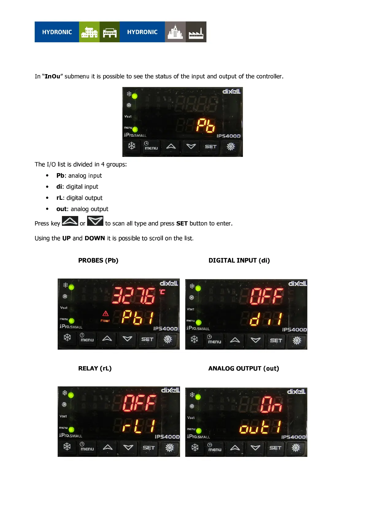 Hydronic IPG315D - 4.4.10. Input; Output Menu