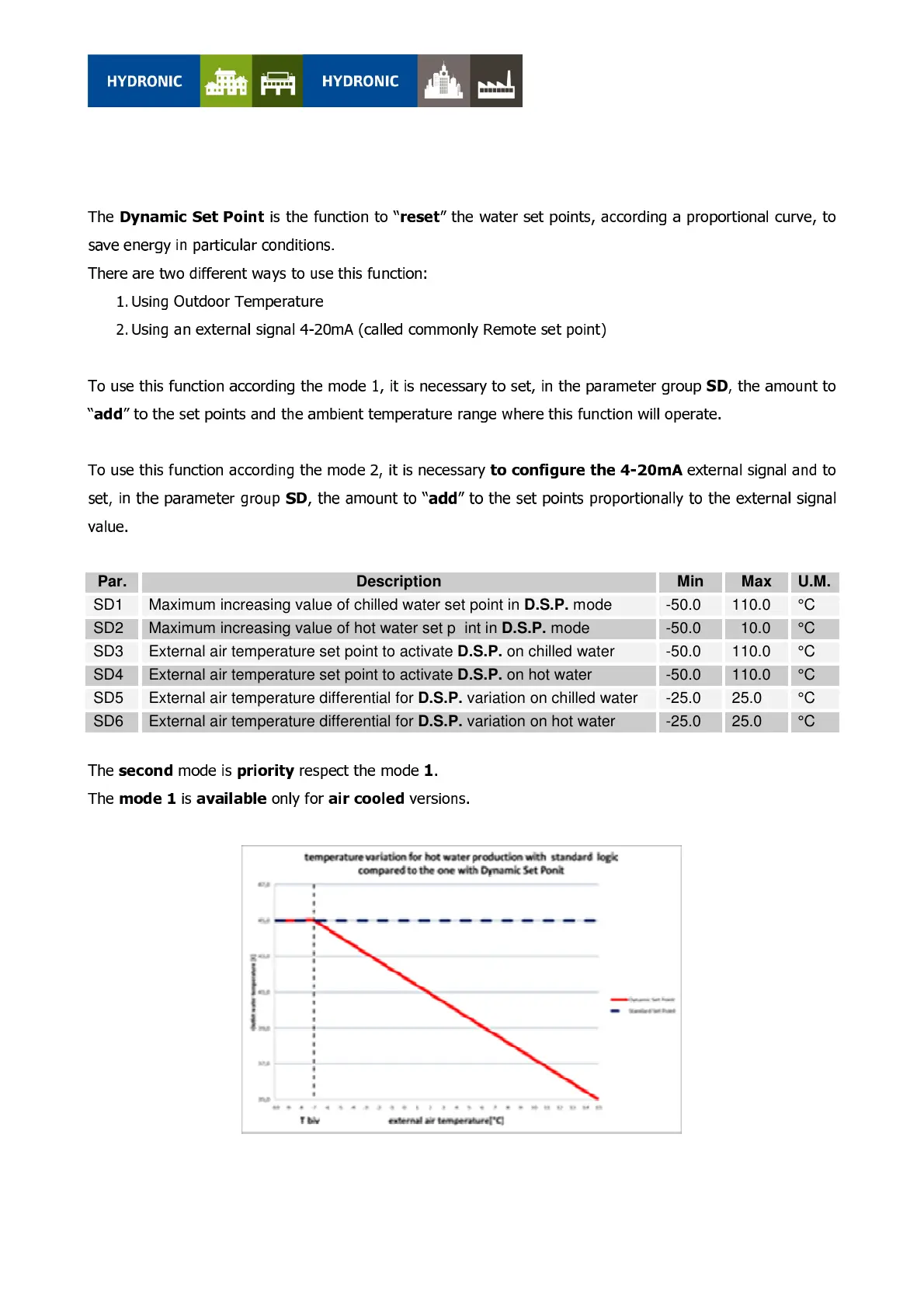 Maximum increasing value of hot water set point in