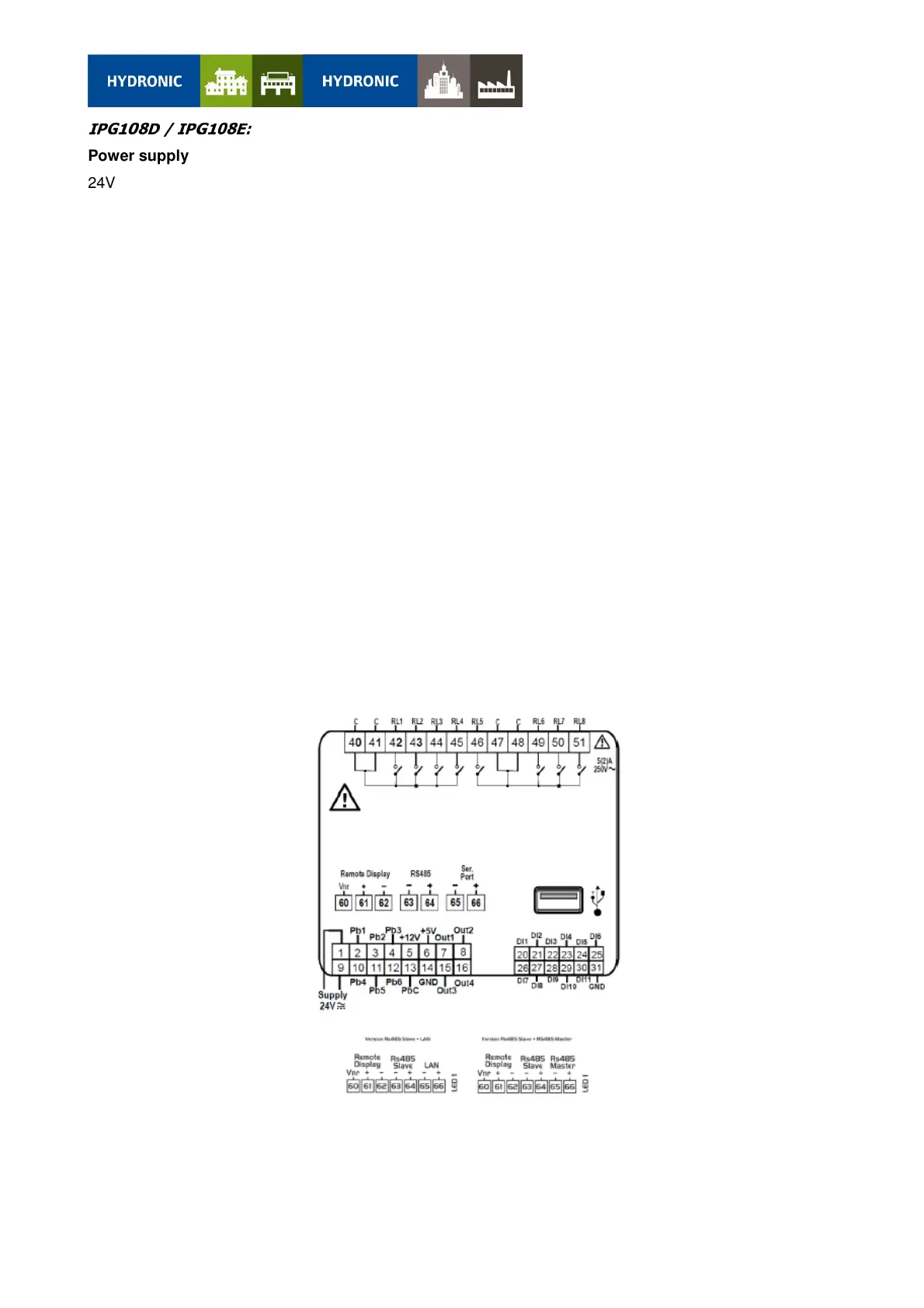 1 RS485 slave with Mod_BUS or with BACnet MSTP communication protocol in case of the controller is the