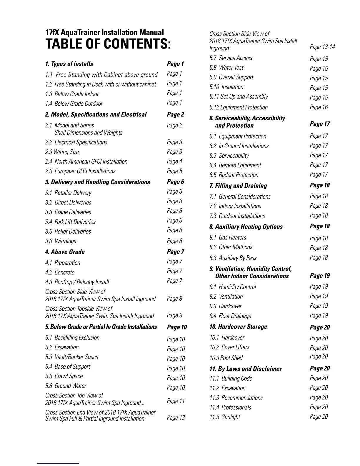 Hydropool 17fX AquaTrainer - Table of Contents