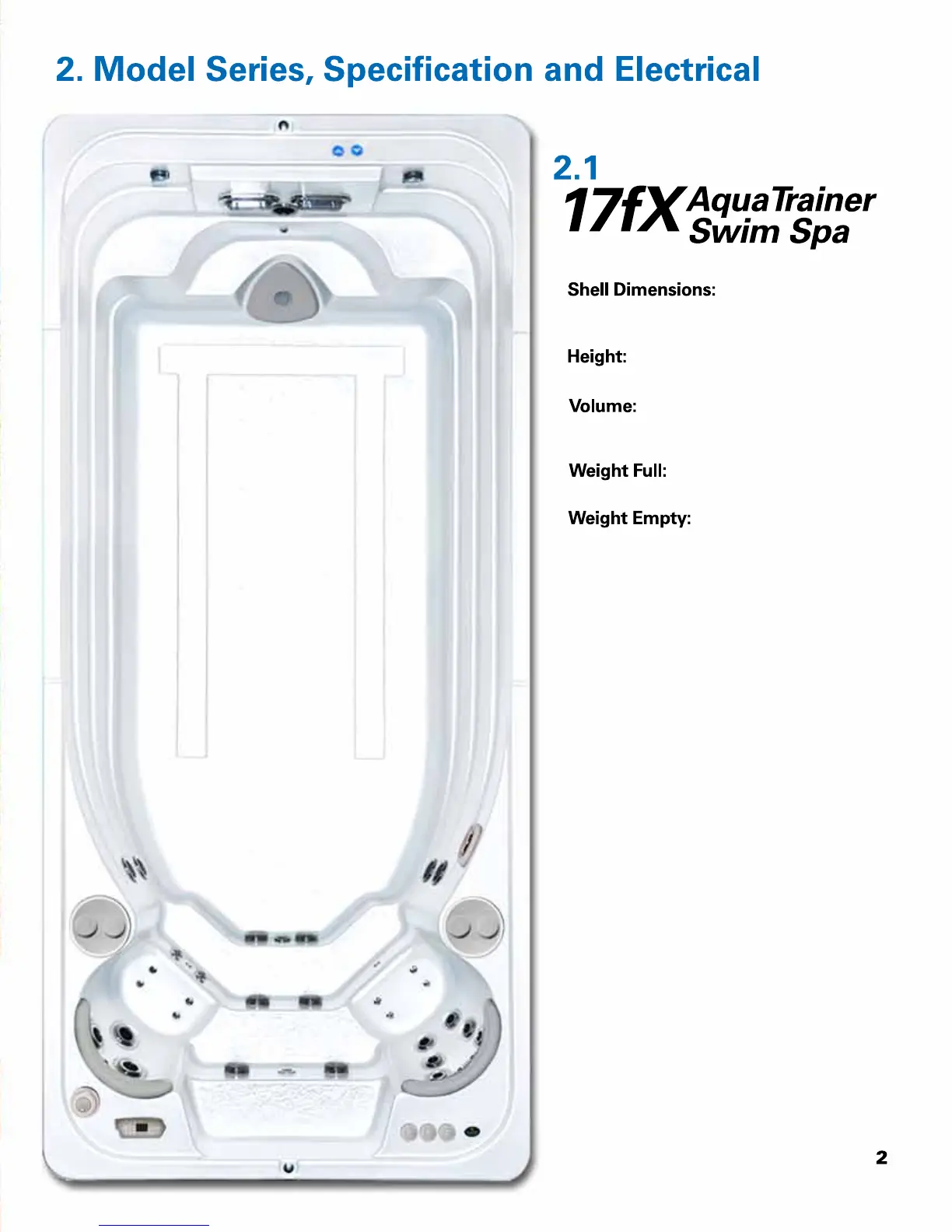 Hydropool 17fX AquaTrainer - Model, Specifications and Electrical