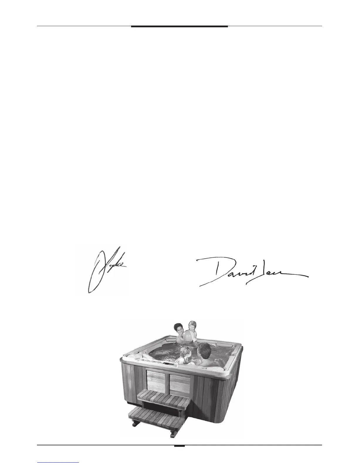 On behalf of everyone at the company, we thank you for your decision to purchase a Hydropool hot tub.