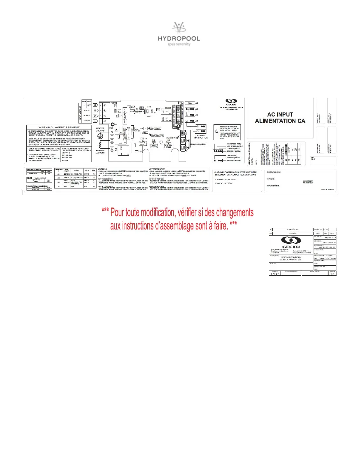 Hydropool SERENITY - Wiring Diagrams; North America IN.YE-3 Wiring Diagram