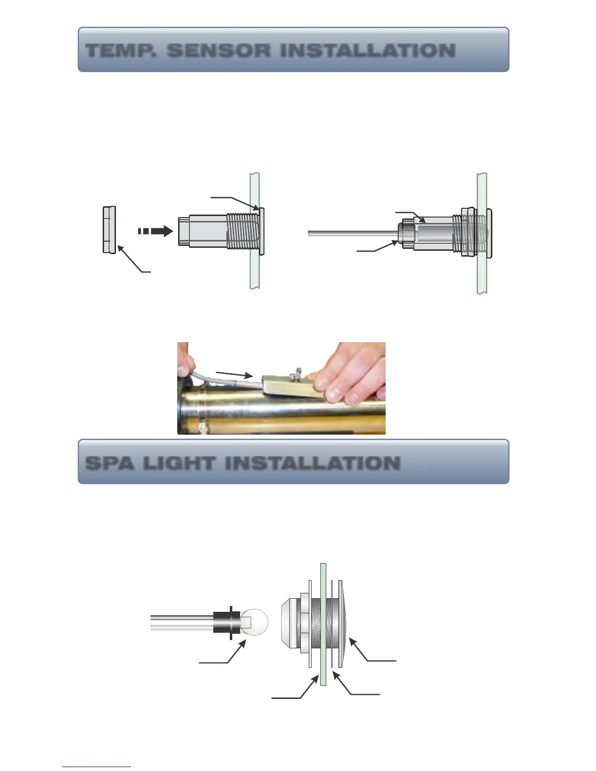 into the spa shell the temperature sensor may be installed with the High-Limit sensor directly on