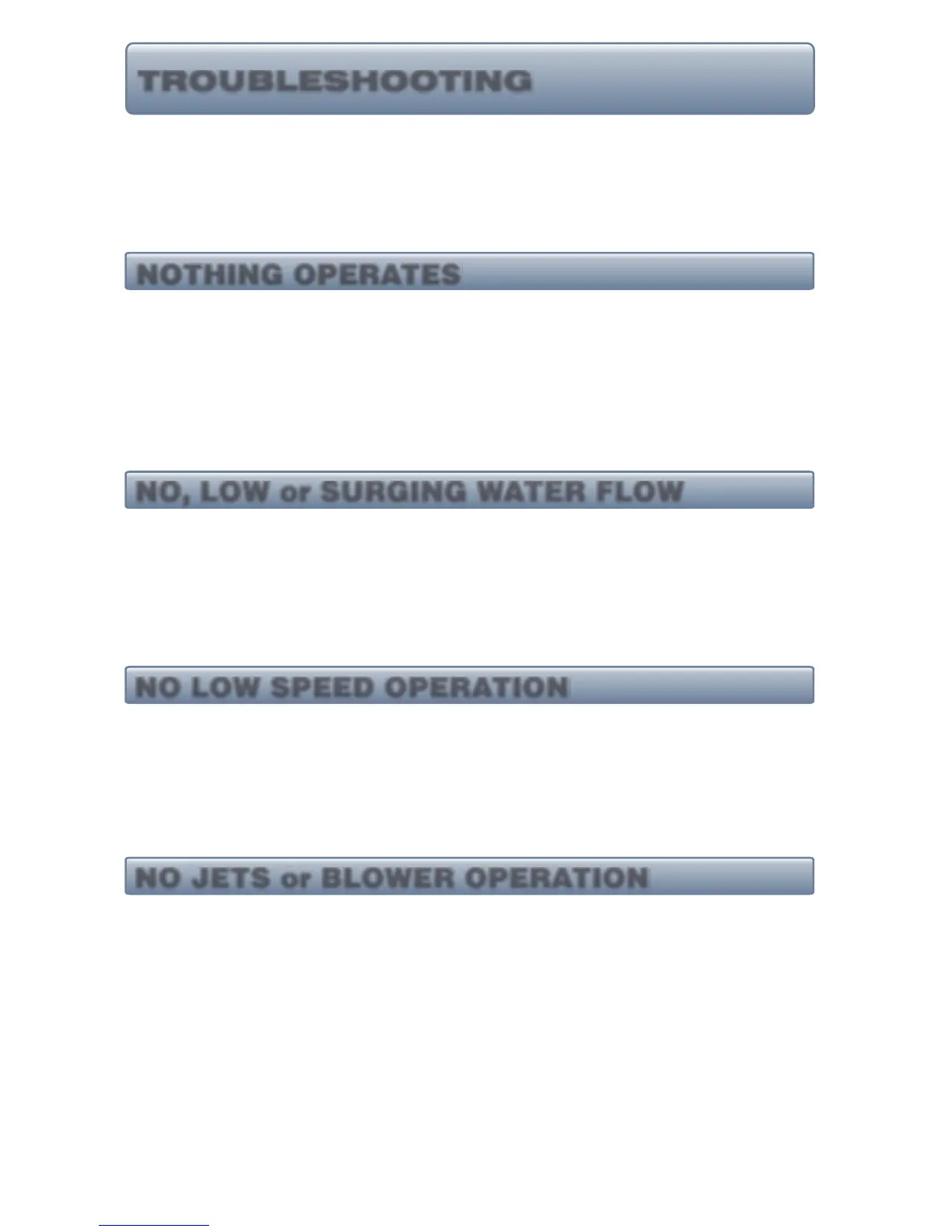 Pump or Blower Fuse Blown - Contact you local dealer.