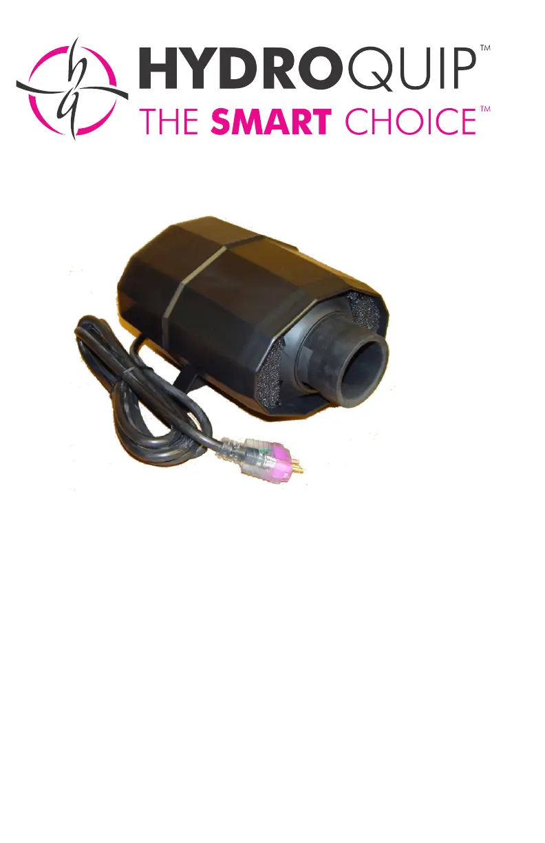 If your HydroQuip Blower isn't working, first check the circuit breaker, as a GFCI should be present. If the GFCI trips repeatedly, stop using the blower until the problem is resolved. Also, make sure the blower is installed correctly and address any plumbing or installation issues. Inspect the full length of the power cord for damage, but note that the cord is not field serviceable and must be replaced by a qualified technician or the manufacturer. Check ventilation and ensure the air intake is free of obstructions. If the thermal overload has tripped or the motor brushes are worn, contact your Hydro-Quip customer service agent because full unit replacement may be required.