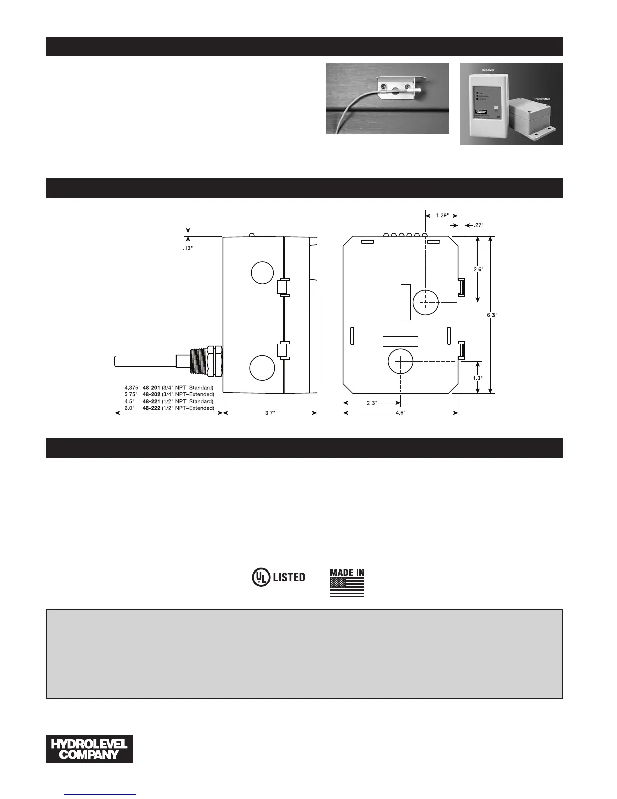 126 Bailey Road, North Haven, CT 06473 • Phone (203) 776-0473 • FAX (203) 764-1711 • www.hydrolevel.com