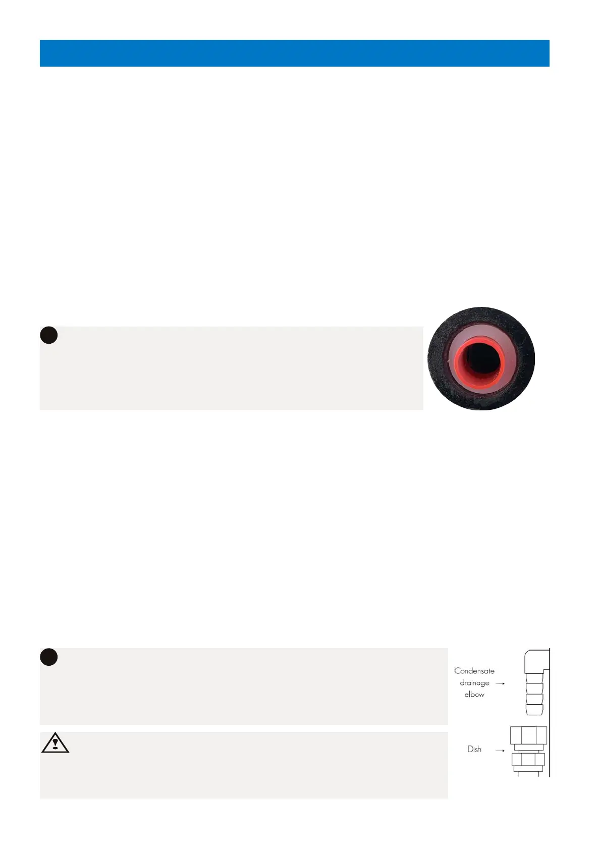 • The system comes with a pre-installed condensate drain connection elbow. Drainage of