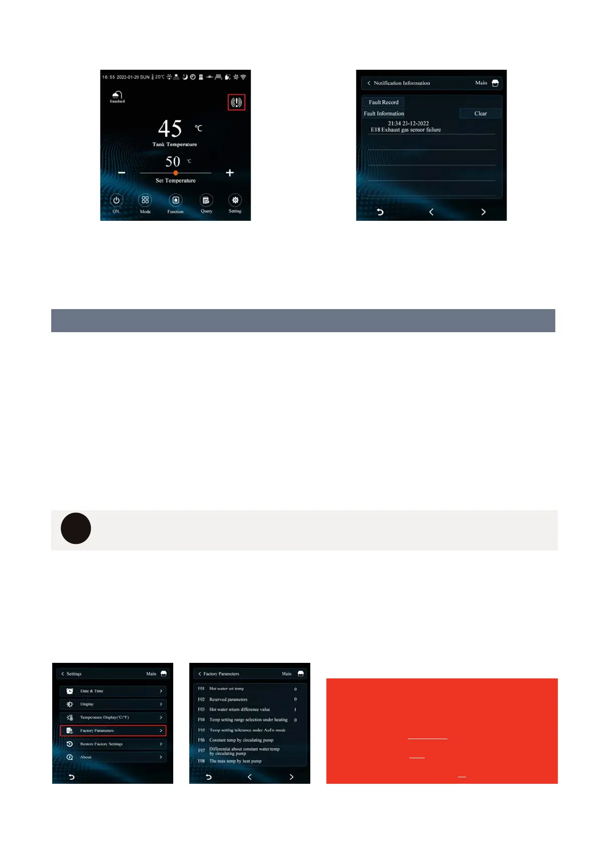 If a fault occurs please note down the error code and then call technical support