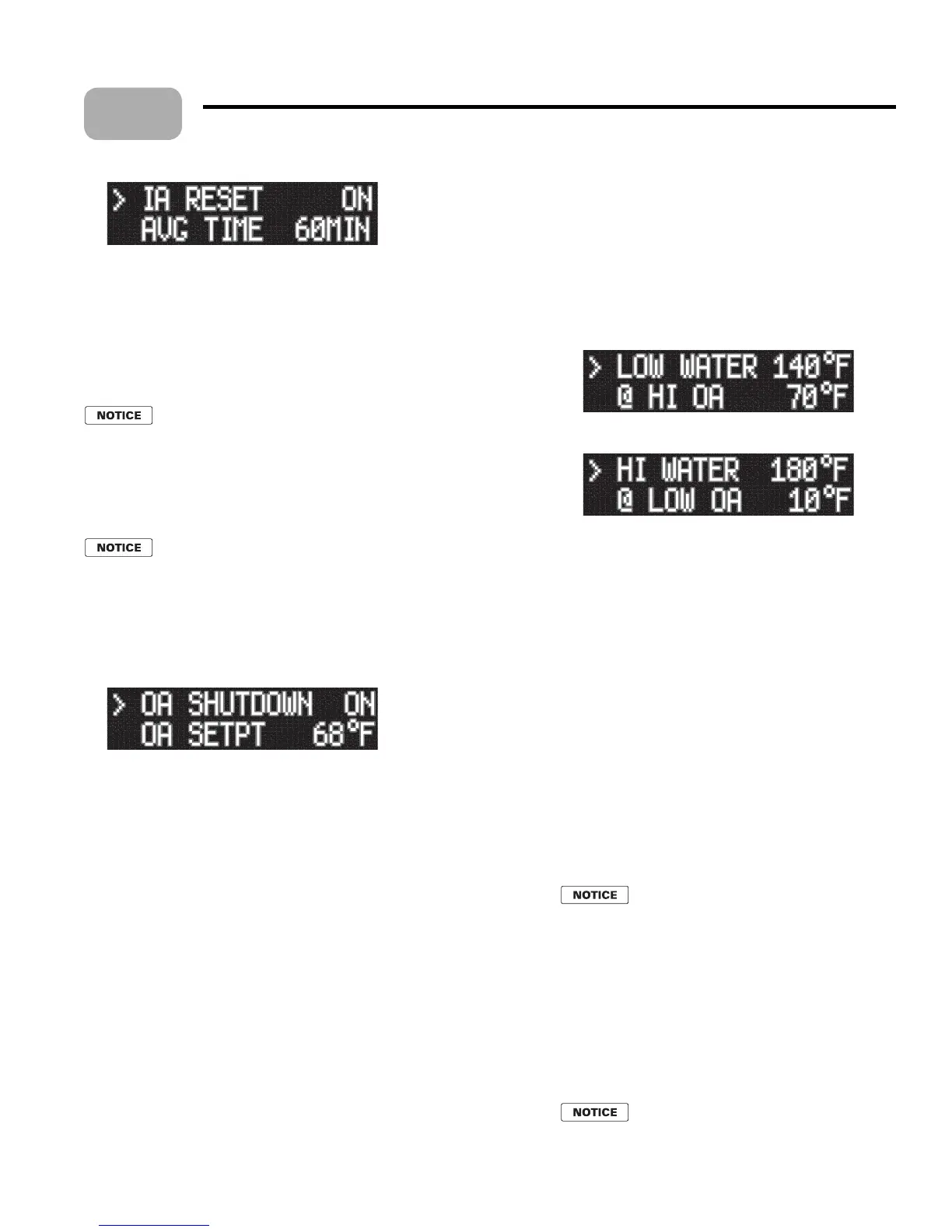 OA RESET (enables or disables outdoor reset function).