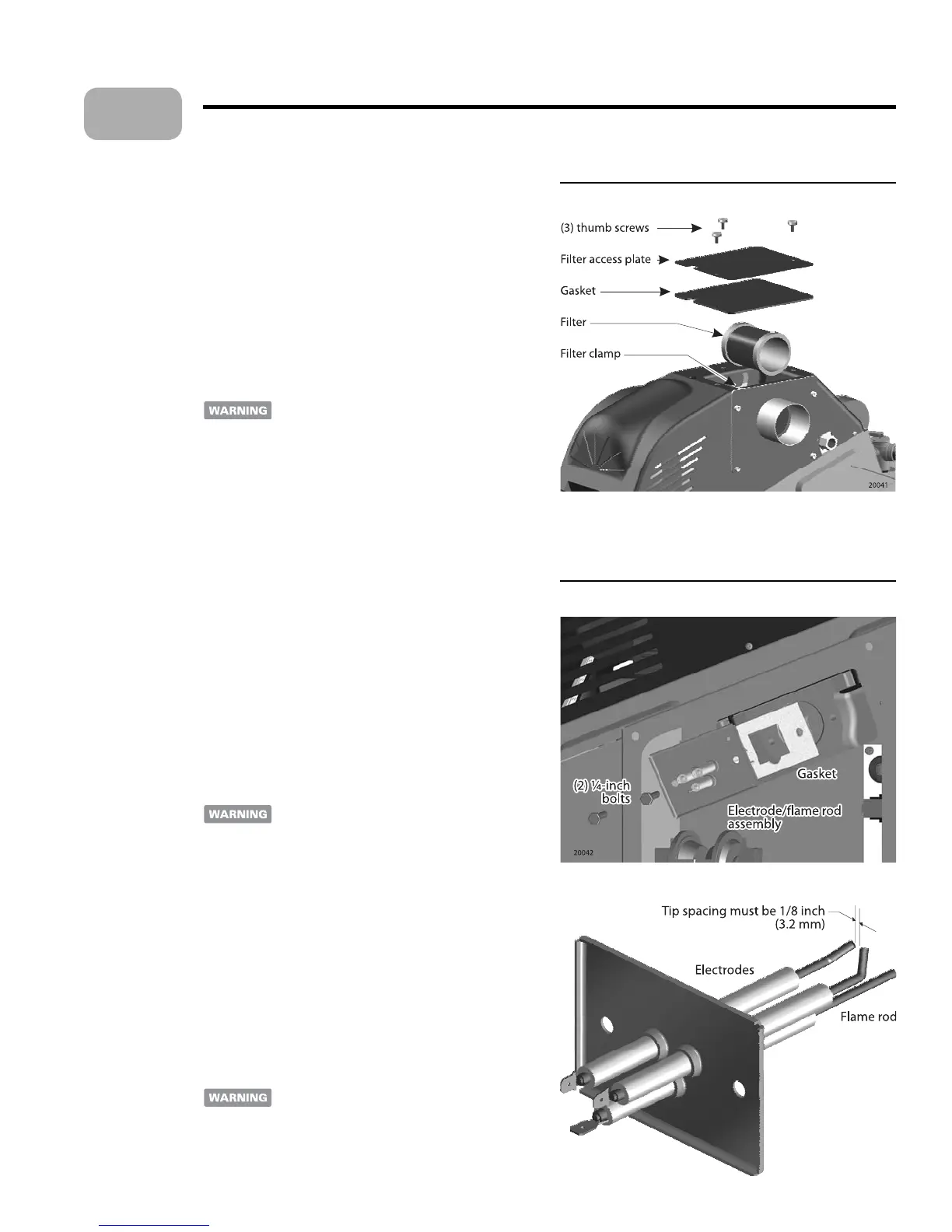 4. If the electrodes or ame rod are damaged or the tip spacing