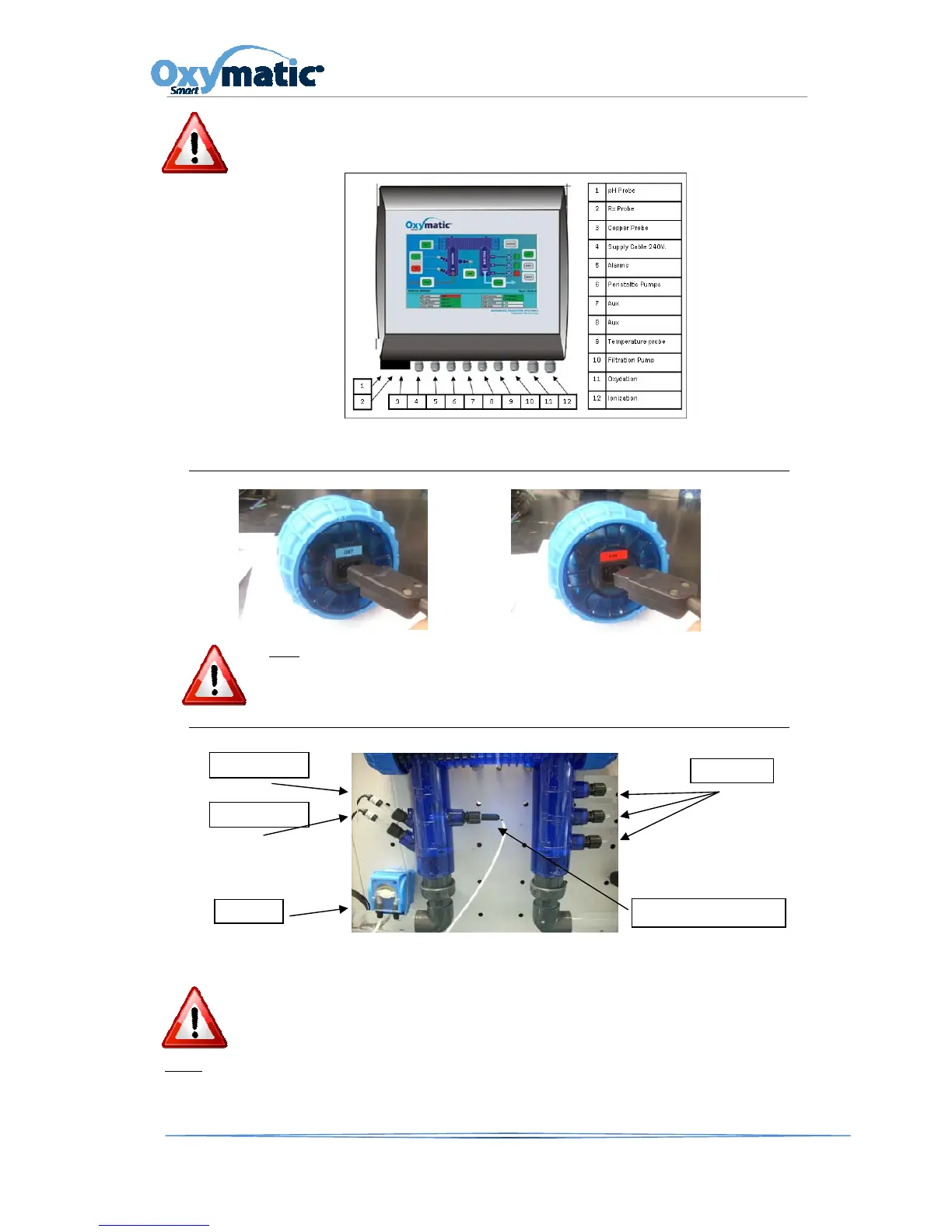 Once the control unit OXYMATIC is fixed, we will connect the wires to the various components.