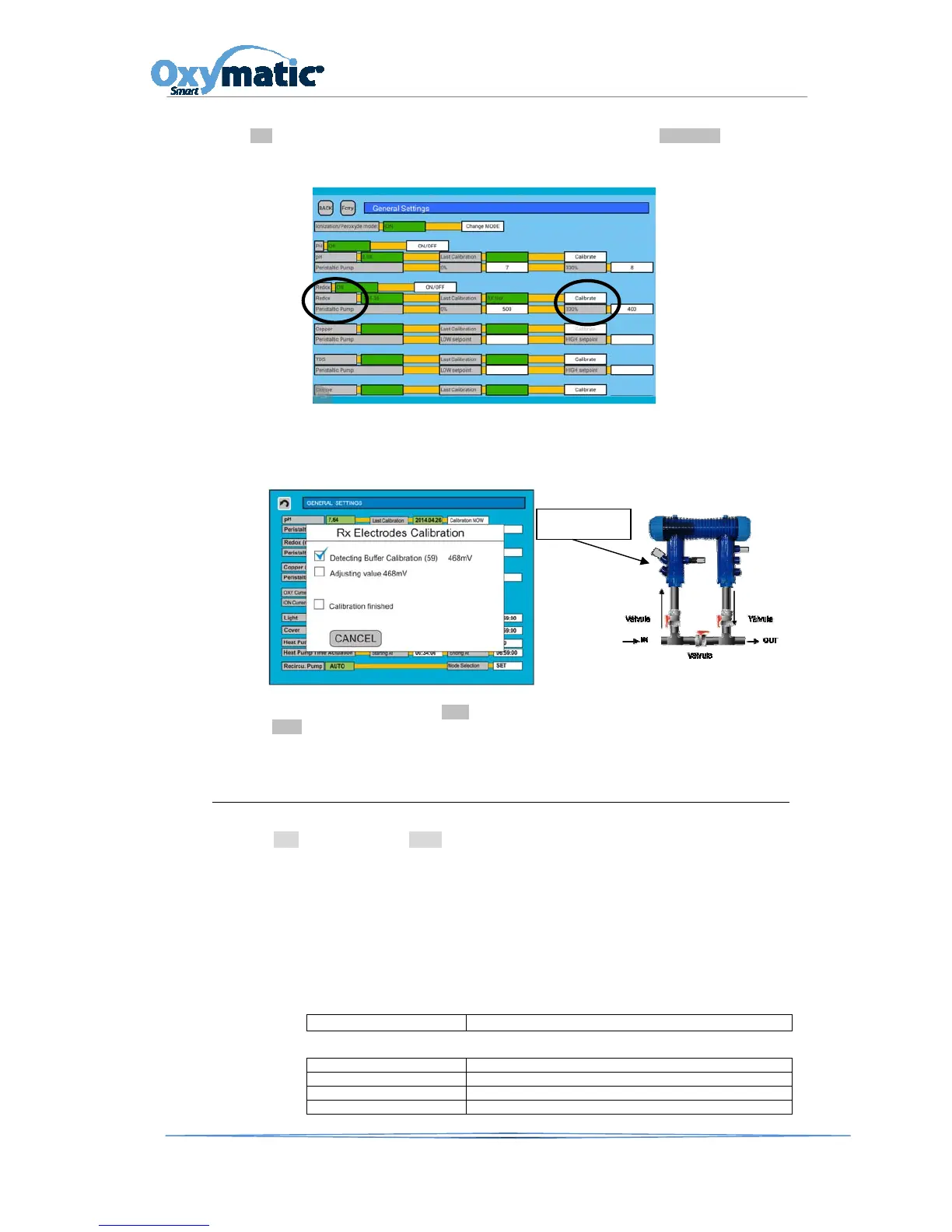 the SET button and enter the password 1122. In the option Redox, go to CALIBRATE in order to