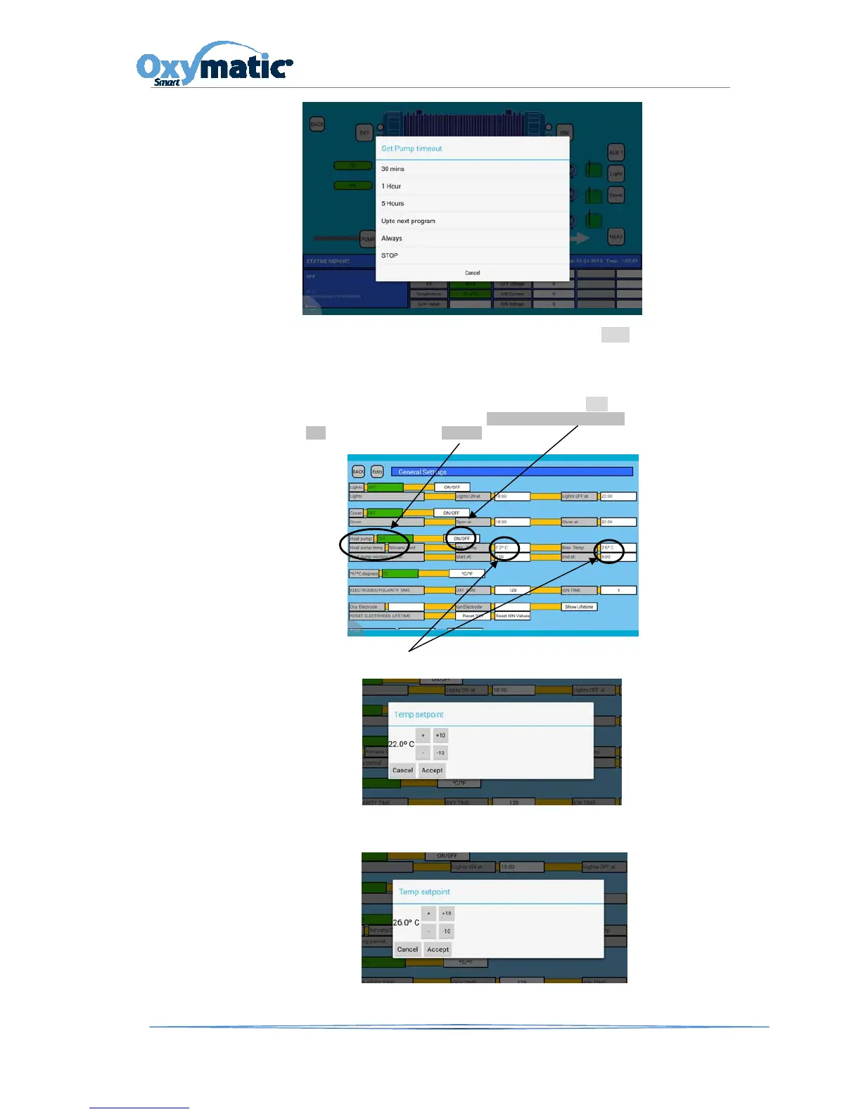 Oxymatic, we can do it f rom the main screen by accessing the SET option / GENERAL