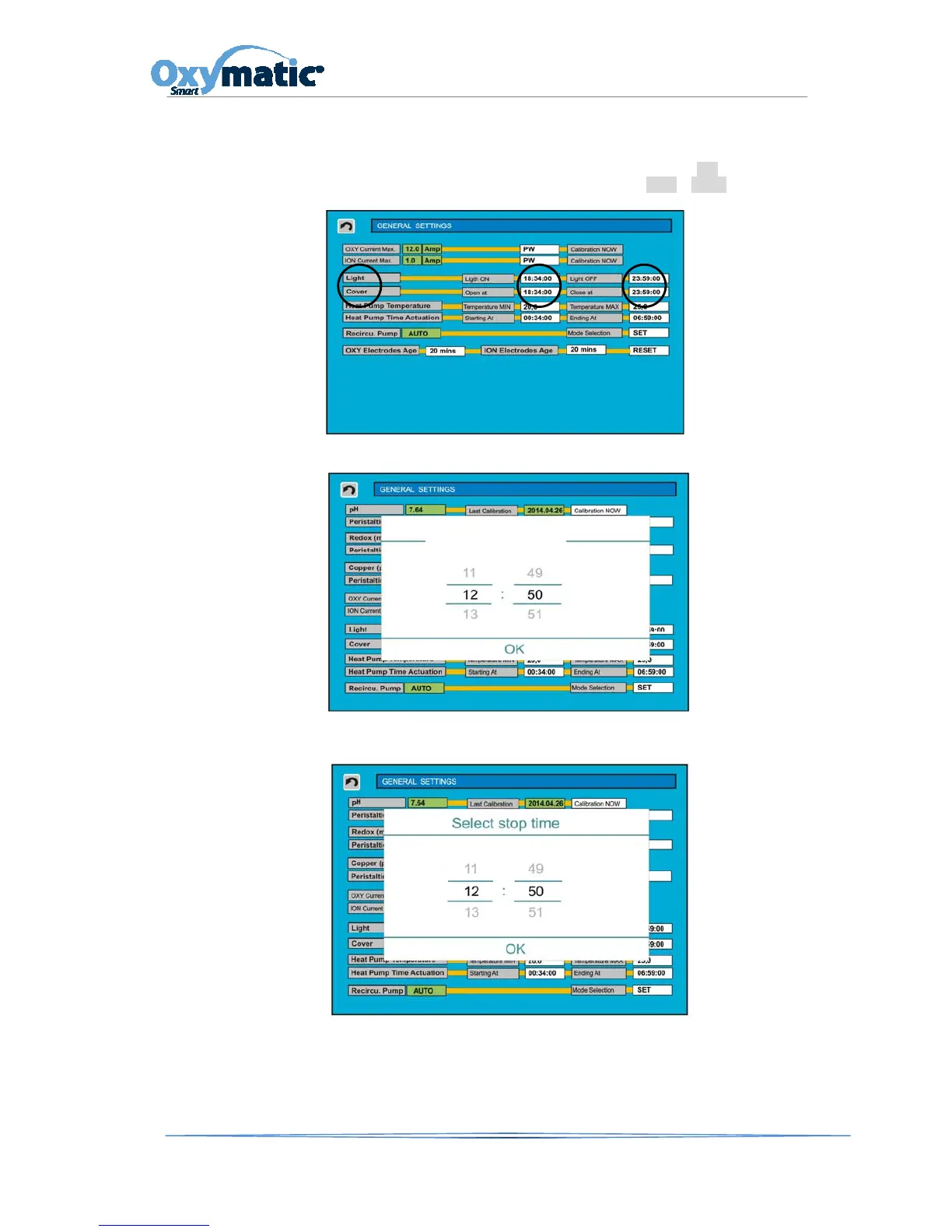 Then we will choose the time to stop the lights or to close the pool cover.