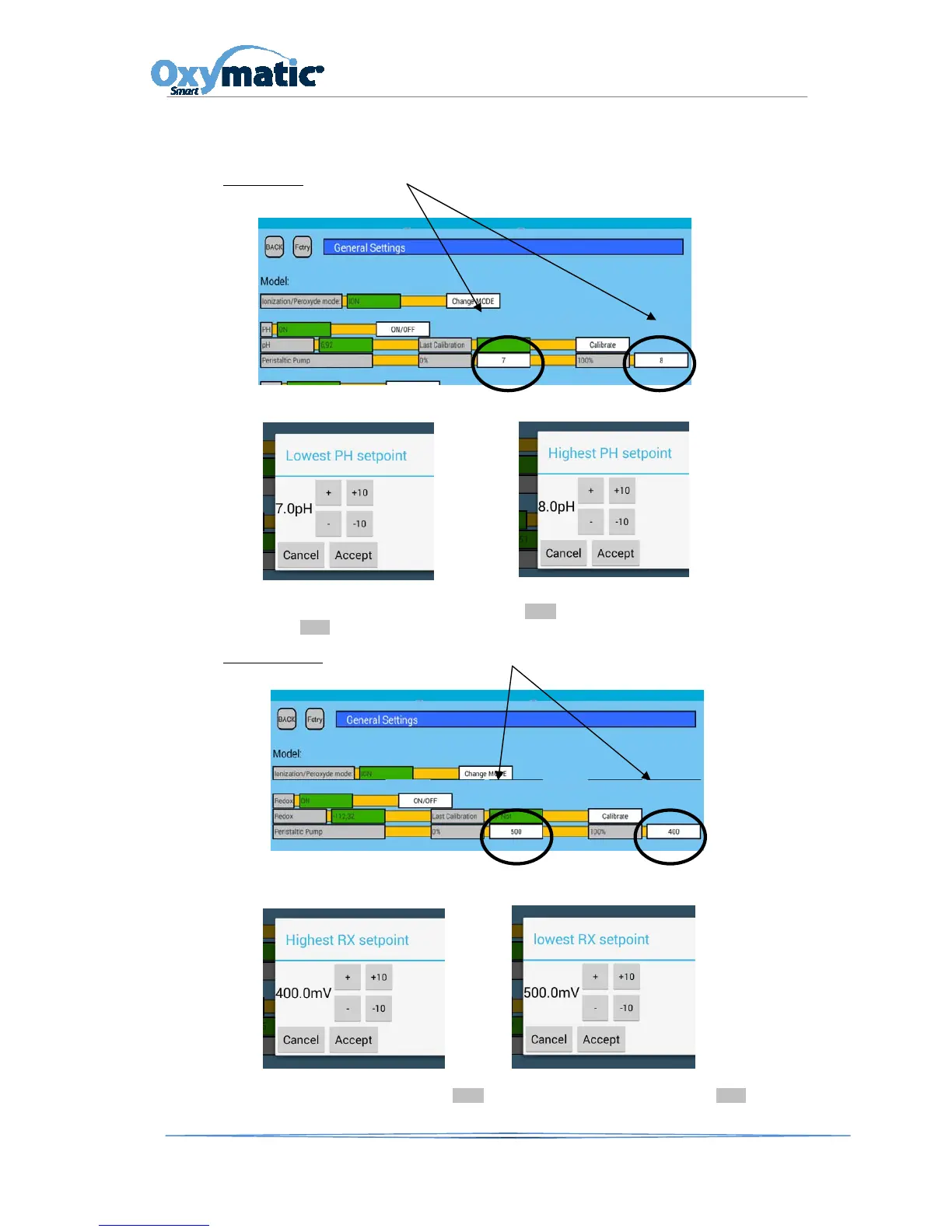 In case youneed to change the pH or Rx set points, you must act as following :