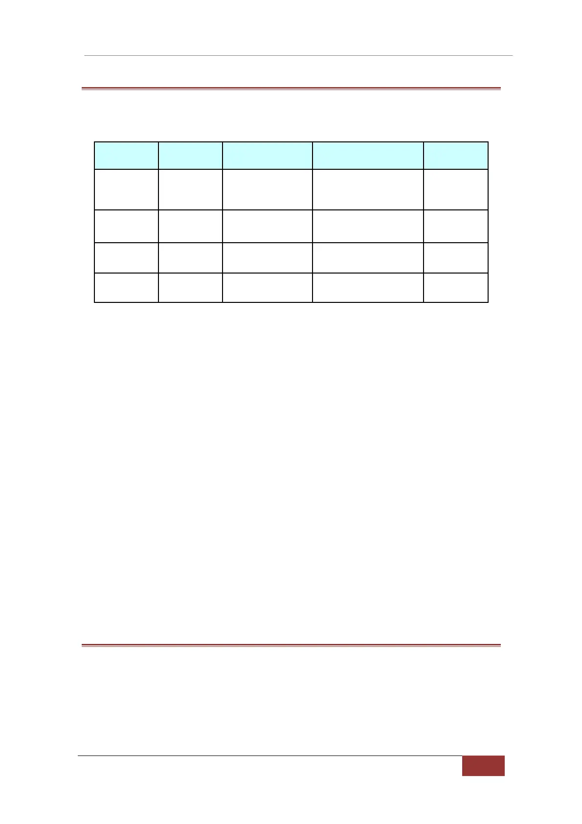 6.1. Table of Maintenance and control