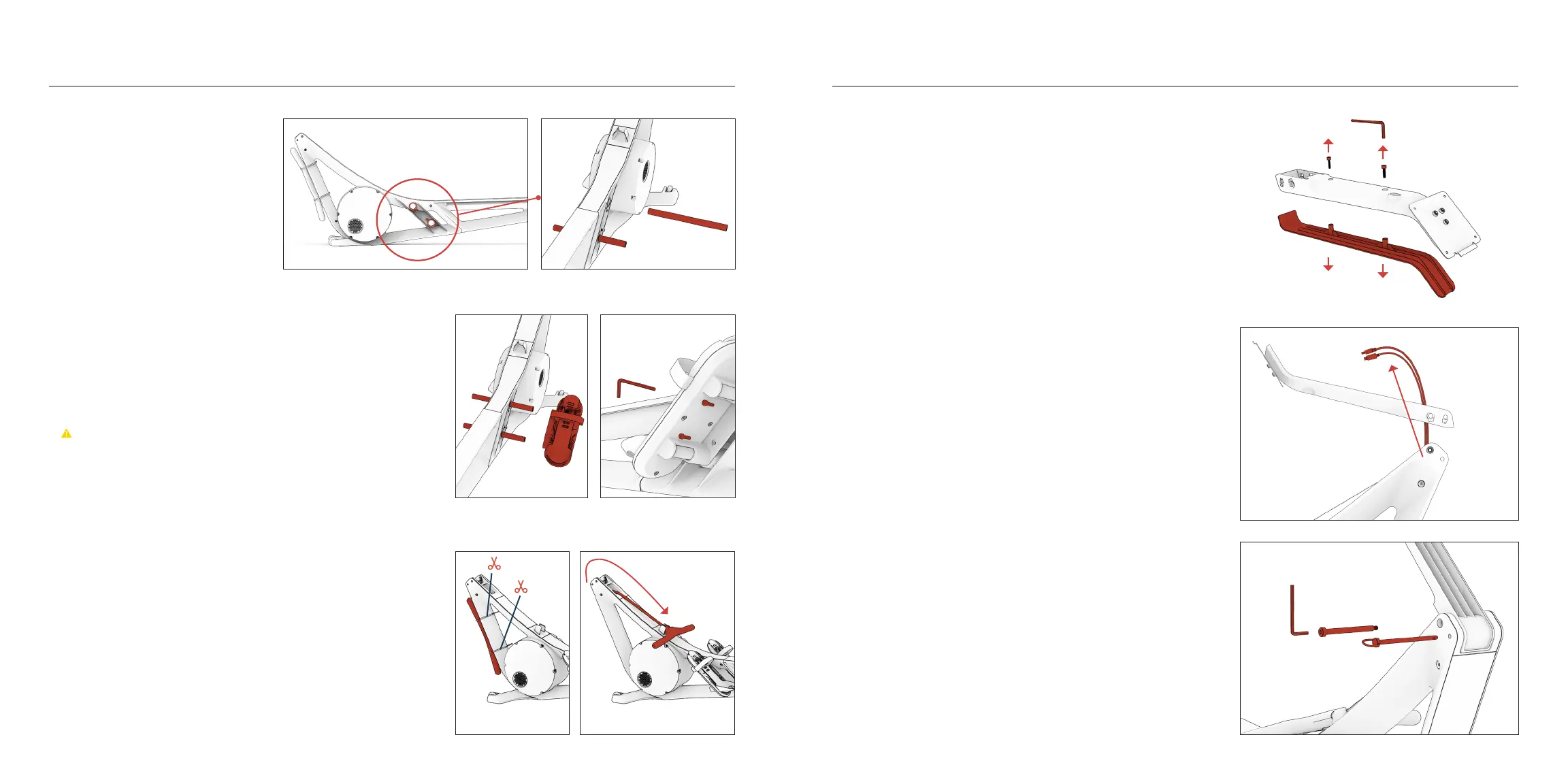1. Cut the plastic ties attaching the handle to the front frame (A).